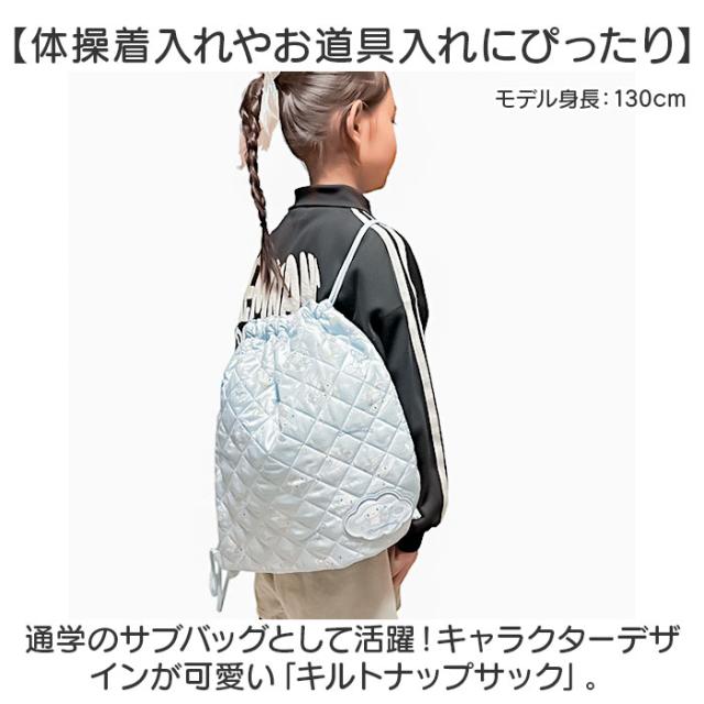 | 商品説明 | 【体操着入れやお道具入れにぴったり】 ・通学のサブバッグとして活躍!キャラクターデザインが可愛い「キルトナップサック」。 【大人気のキャラクターが集合☆】 ・男の子も女の子も好きなキャラクター柄を、全面にプリント。一緒に登下校できて気分もアップ。 【こっそり名前を書けるワッペン】 ・表面下部に配置されたワッペン。めくると内側に名前を記入でき、お友達とお揃いでも大丈夫◎ (※1)ナップサック内側にも、ネームタグ付きです。 【ふんわり柔らかく軽やかなつくり】 ・ふっくらキルト生地を採用。体に負担がかかりにくく、小さなお子さまにも最適。 【キュッと絞れる巾着タイプ】 ・サイドの紐を絞れば、中身の飛び出しをガード。ガバっと開いて出し入れもスマート。 【ざっくり収めて使いやすいサイズ】 ・A4対応で、ランドセルに入りきらない荷物を収納するのに重宝。 (※2)紐の絞り具合により、A4が入らない場合もあります。 【お子さまの成長に合わせて使える】 ・紐の結び目を変えて、長さを調節。長めにすると、ランドセルの上からも背負えて便利! 【お好みでスタイルチェンジもOK】 ・上部には持ち手を装備。手持ちしたり、机の横に掛けておくこともできる仕様。 【手洗いできてお手入れラクラク】 ・汚れが気になったら、自宅で手洗い。いつも清潔をキープできるのが嬉しい! 【入園・入学・新学期準備におすすめ】 ・お気に入りがきっと見つかるバリエーション!新生活の準備アイテムにリストアップ☆ |