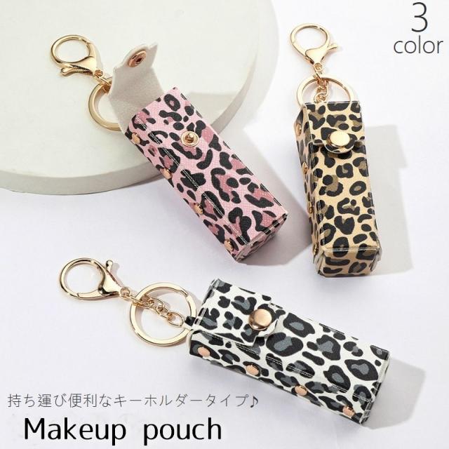 化粧ポーチ リップケース リップホルダー キーホルダー 口紅ケース 口紅ホルダー リップ入れ レザー調 ヒョウ柄 豹柄 アニマル