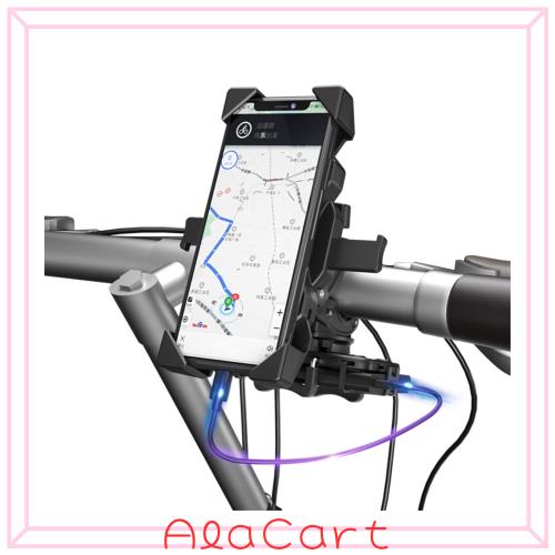 モバイルパワークリップ付き 自転車 スマホホルダー バイク オートバイ パワーバンククリップ スマホ固定用 360度回転 iPhone 15/14/13/1