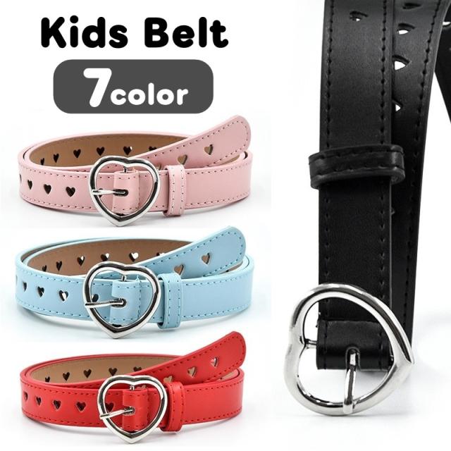 ハートのバックルやホールが可愛い、子供用のベルト。