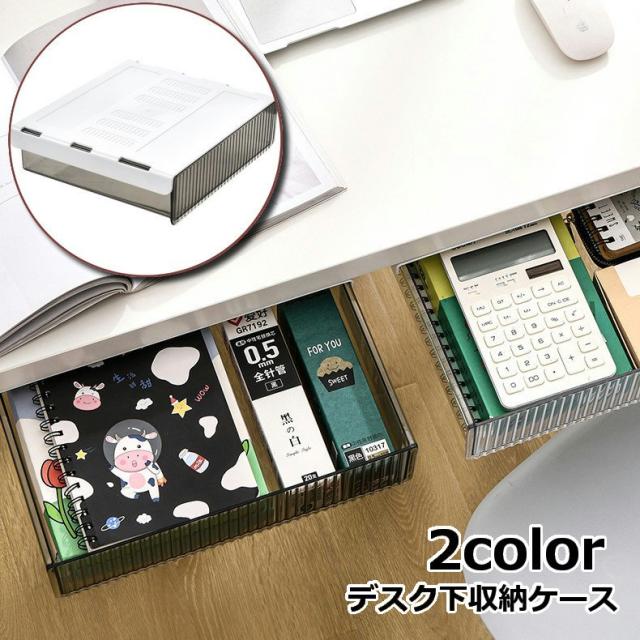 デスクなどの下に簡単に取り付けてスペース活用できる収納ケースです。