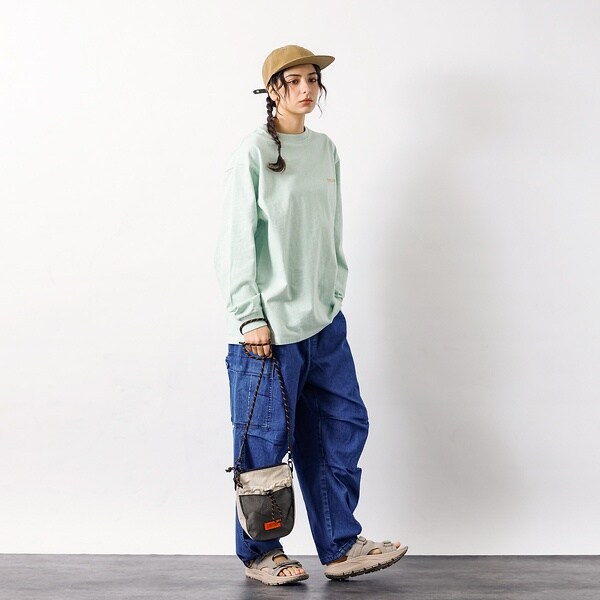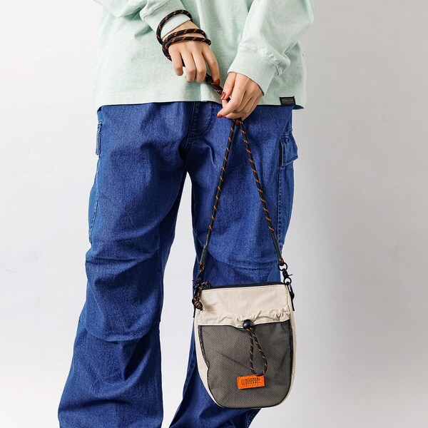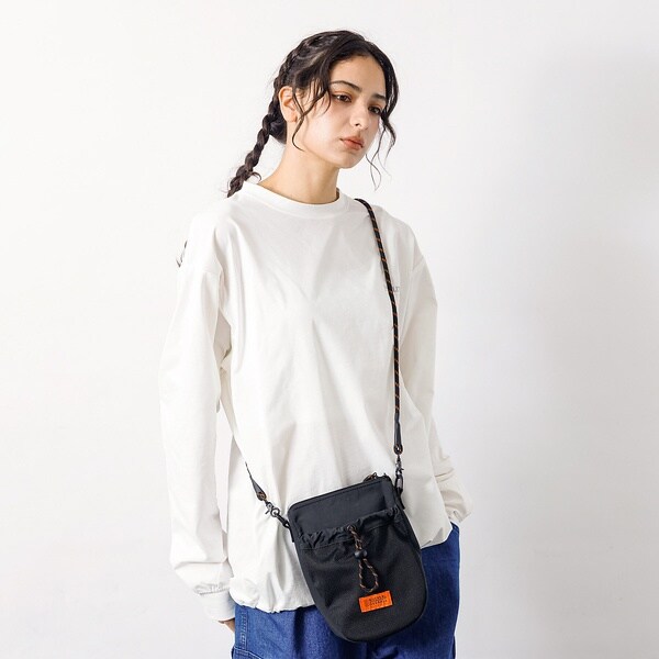 所持品が程よく入る大きさは普段使いに適しています。ナチュラルな印象のナイロン素材が馴染むアイテムです。