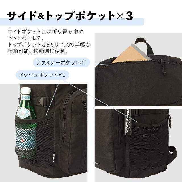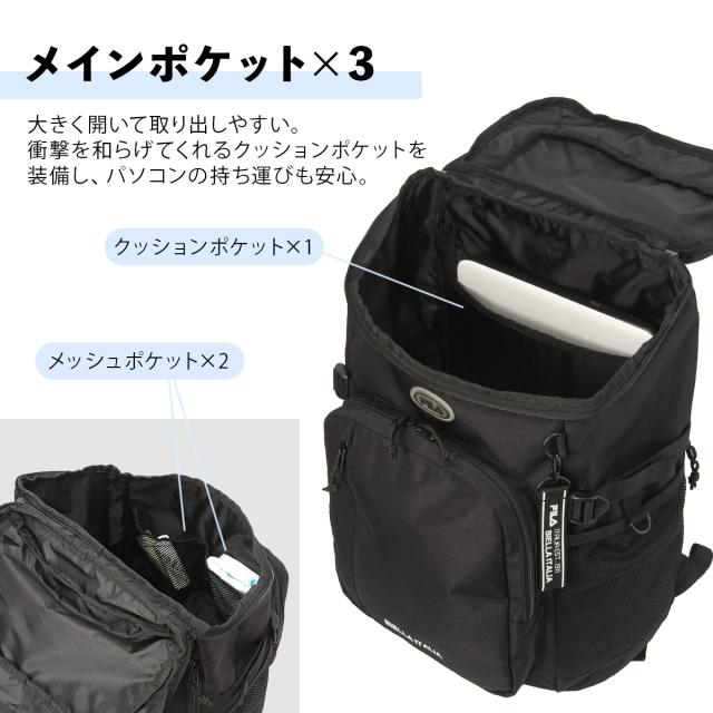 商品レビューで+5%|FILA フィラ リュック 33L 大容量 軽量 撥水 男子 女子 中学生 高校生 黒 通学 部活 大きめ スクールバッグ デイパック バックパック A4 B4 ヴィルシーナ 7893