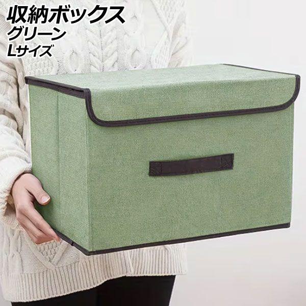 収納ボックス グリーン L シンプル&オシャレに整理整頓 AP-UJ1108-GR-L 収納ケース 衣装ケース 折りたたみコンテナ 収納コンテナ 折りたたみボックス 折り畳みボックス コンテナボックス ボックス コンテナ ケース 箱 折りたたみ 折り畳み 収納 衣類 洋服 下着 靴下 小物 おもちゃ 玩具 本 雑貨 日用品 クローゼット 押し入れ ワードローブ パントリー 物置き キッチン 寝室 ベッドルーム キッズルーム 子供部屋 アウトドア キャンプ オフィス 事務所 店舗 お店 不織布 重ねる 開閉 蓋つき 蓋 フタ 便利 便利グッズ コンパクト 緑 GREEN 大 Lサイズ 4570108604081 507345130
