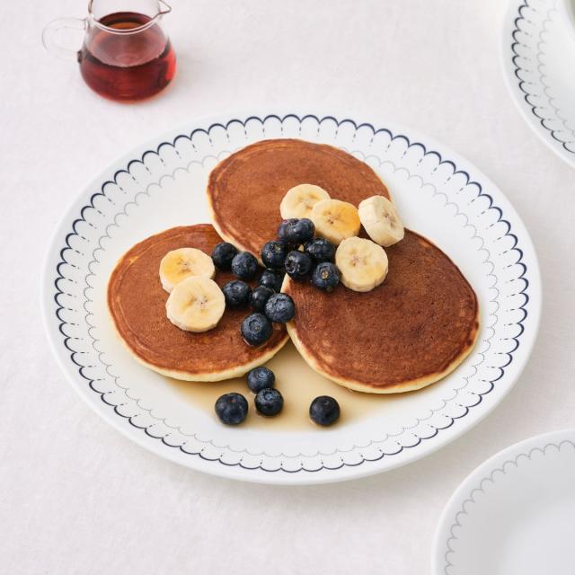 カスピアンレースのデザインはホタテ貝の模様からインスピレーションを得ており、繊細な装飾にフォーカスしながら、波模様をシンプルかつ心地よく表現しています。ネイビーのディテールが入ったすっきりとしたホワイトカラーは、軽やかで快適な肌触りで、毎日のディナーウェアにおすすめです。