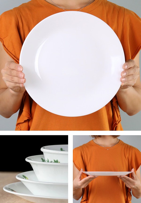 メイン料理、副菜を盛り付けたワンプレート、みんなでシェアする大皿料理など1枚あると便利なサイズです。三層のガラスをラミネートした強度に優れたガラスを使用しているので、丈夫で扱いやすく普段使いに最適です。