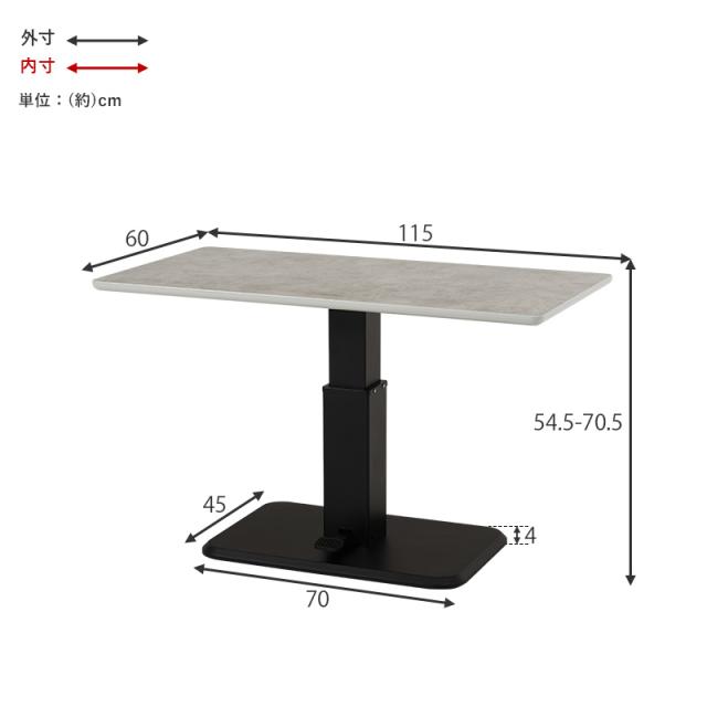 【商品サイズ(約)】幅115×奥行60×高さ54.5〜70.5cm
