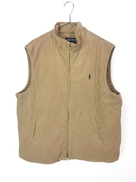 古着 POLO GOLF Ralph Lauren ワンポイント ソリッド パデット コーデュロイ ハイネック ベスト XL 古着