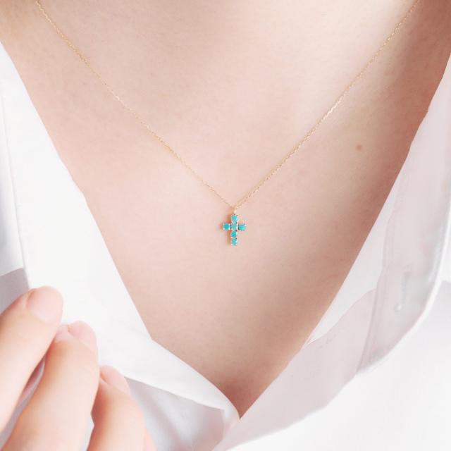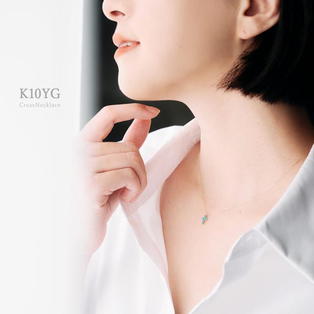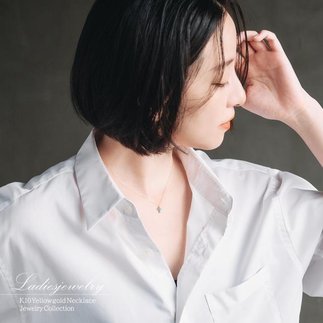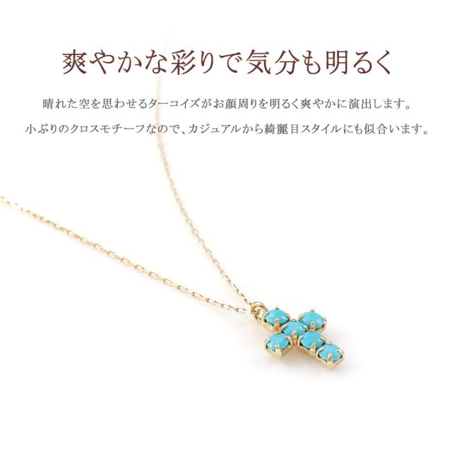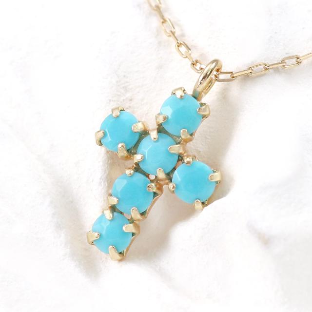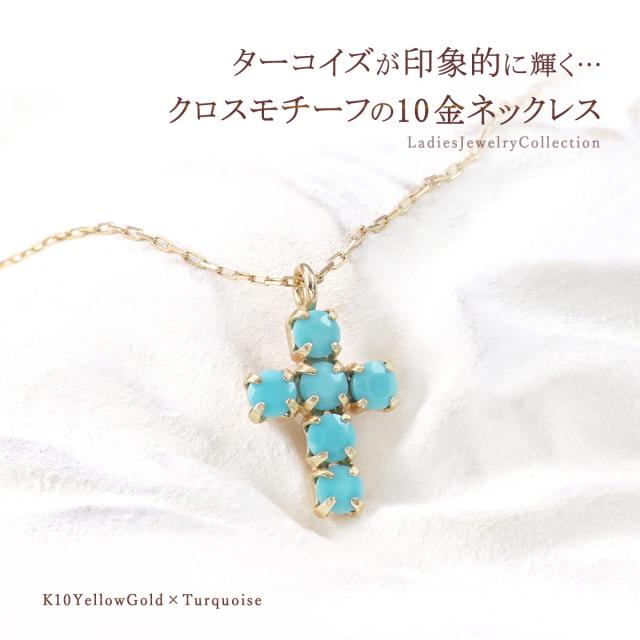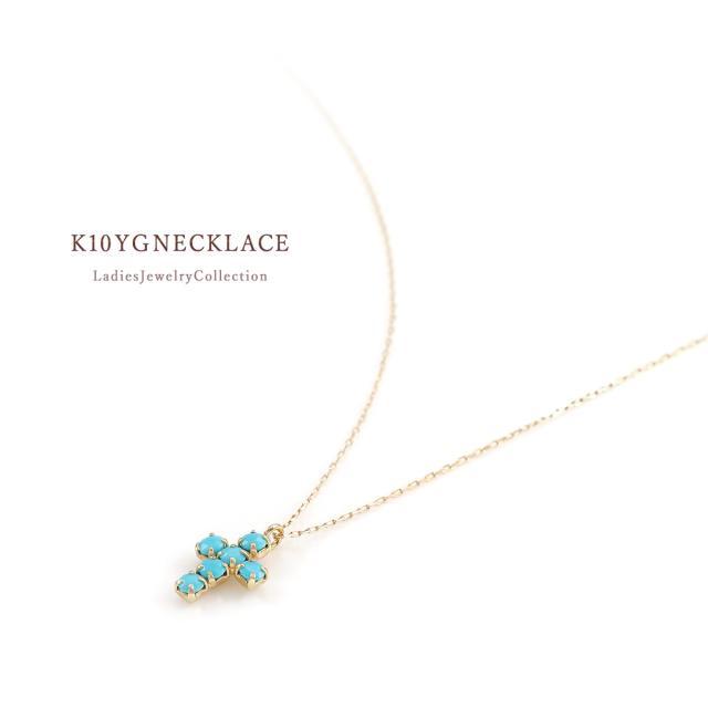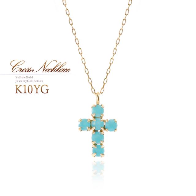 クロス ネックレス レディース シンプル ターコイズ 天然石 アクセサリー 10金 イエローゴールド K10 10K 宝石 トルコ石 上品 小ぶり 小さめ 可愛い おしゃれ 十字架 お誕生日 プレゼント 結婚祝い 記念日 ギフト K10YG 12月 誕生石 女性 彼女 妻 本物 クリスマス プレゼント