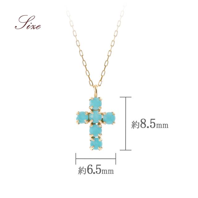 | サイズ | ・ターコイズ(トルコ石):約2mm ・クロスモチーフ:約6.5mm×約8.5mm(カン部分除く) ・チェーン:約40cm(約36cm部分にアジャスターカン付き) ※モデルは40cm(標準サイズ)を着用しています。 |