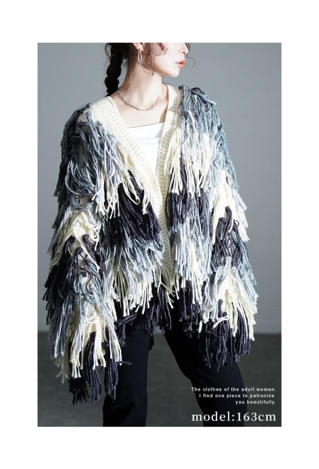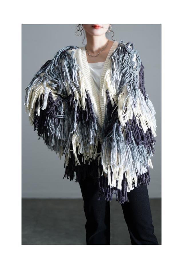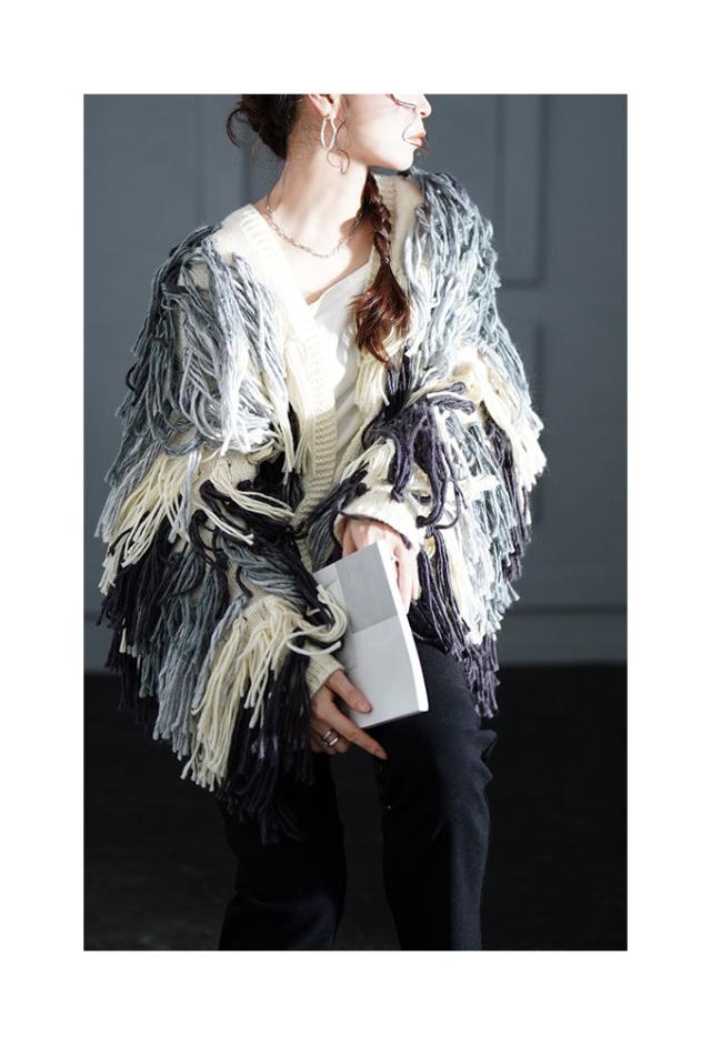 商品名: 存在感が溢れ出すフリンジニットカーディガン