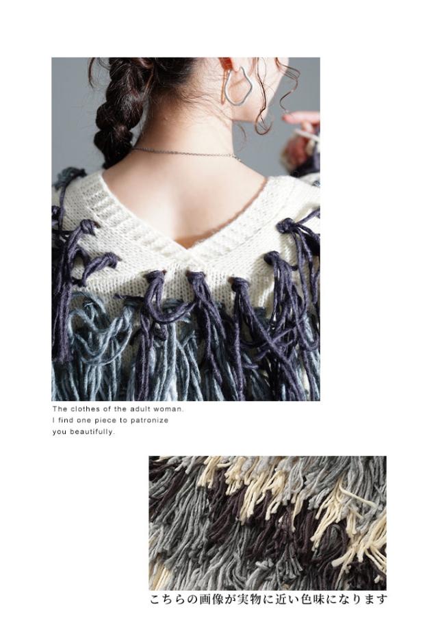 特徴: フリンジ ボーダー グラデーション Vネック