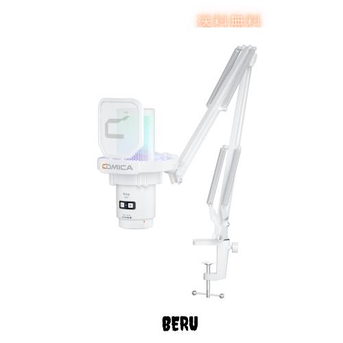 comica USBコンデンサーマイク ゲーミングマイク ブームアーム付き マイクセット 単一指向性 RGBライティング ノイズ軽減 ワンタッチミュ