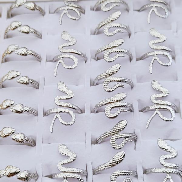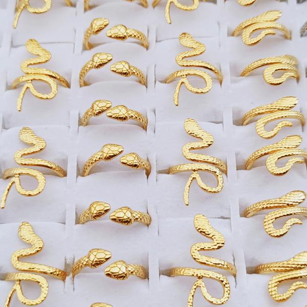 男性と女性のためのゴシックスネークリング 10個 ステンレス鋼 調整可能なパンクジュエリー パーティーギフト 卸売