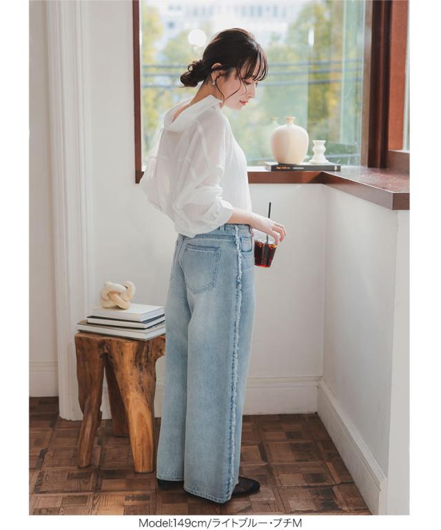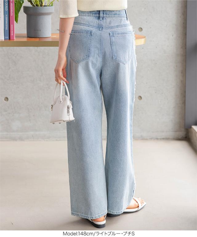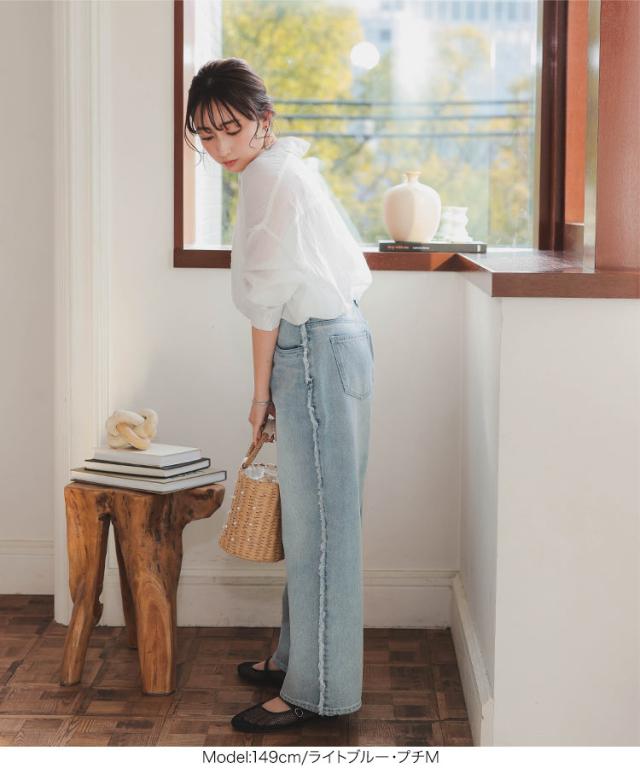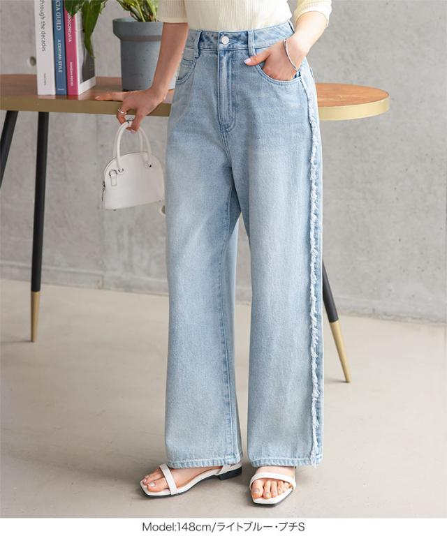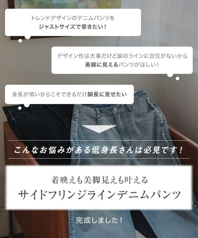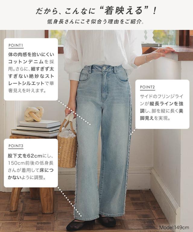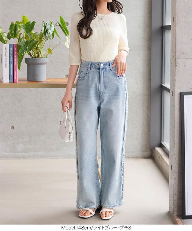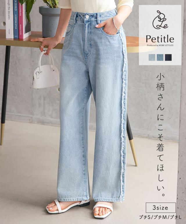 春新作 [ Petitle プチレ ] サイドフリンジラインデニムパンツ M4156 入荷済 レディース 20代 30代 40代 低身長サイズ 小柄 低身長 低身長さん向け 低身長さんサイズ 低身長さん向けサイズ 低身長コーデ サイズ プチサイズ レタスオリジ