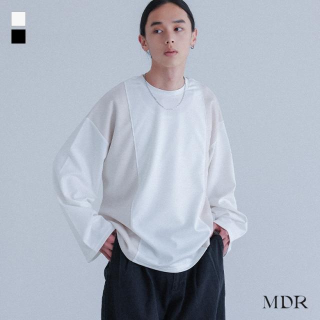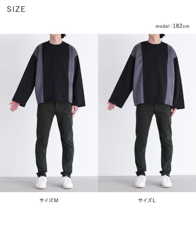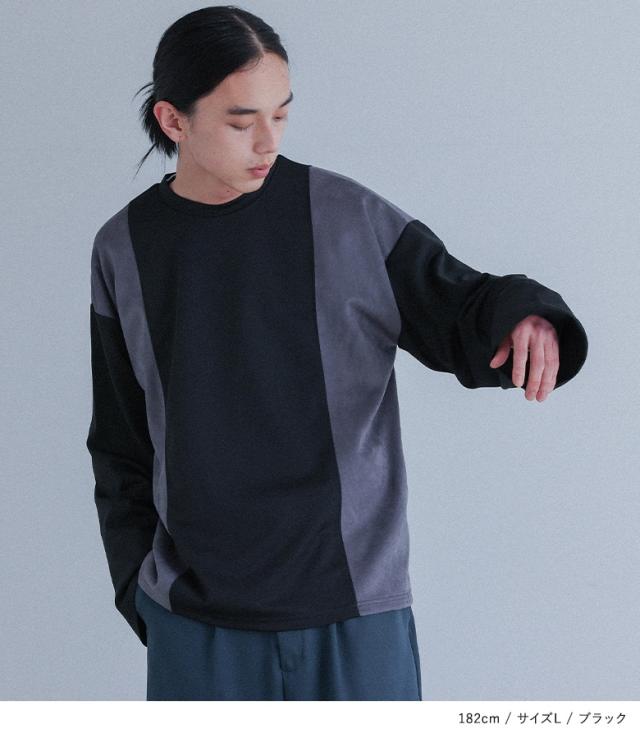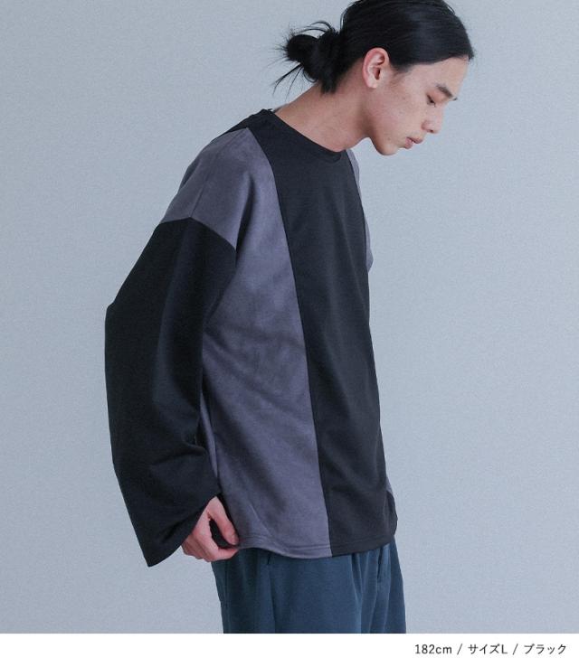 『MDRポンチスエード切替トップス』【メール便不可】【20】[カットソー メンズ トップス 長袖 スウェードポンチ ラフ 伸縮性 着回し カットソー生地 レイヤード 重ね着 柔らかい オシャレウォーカー]