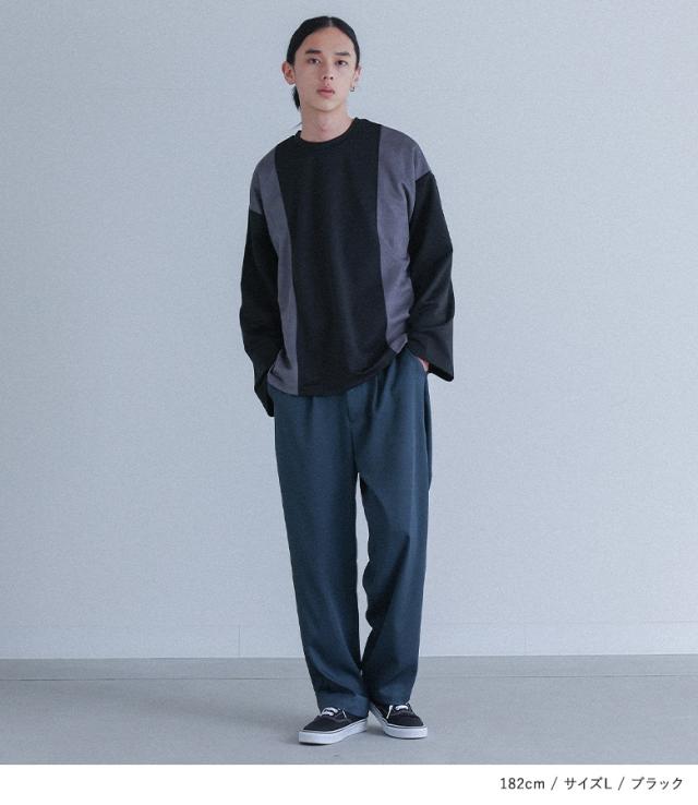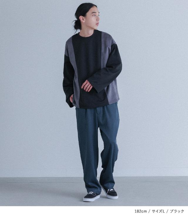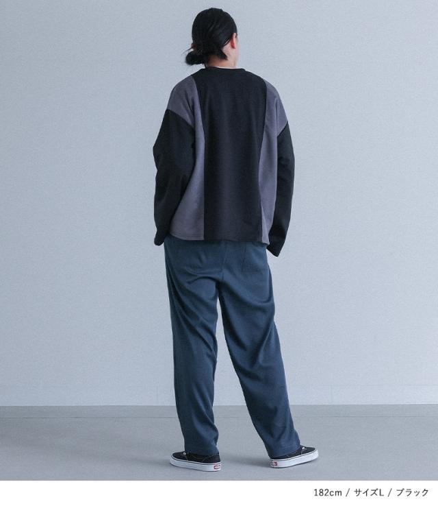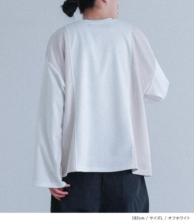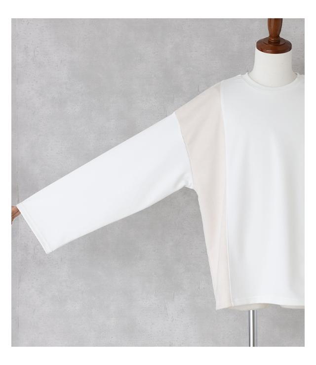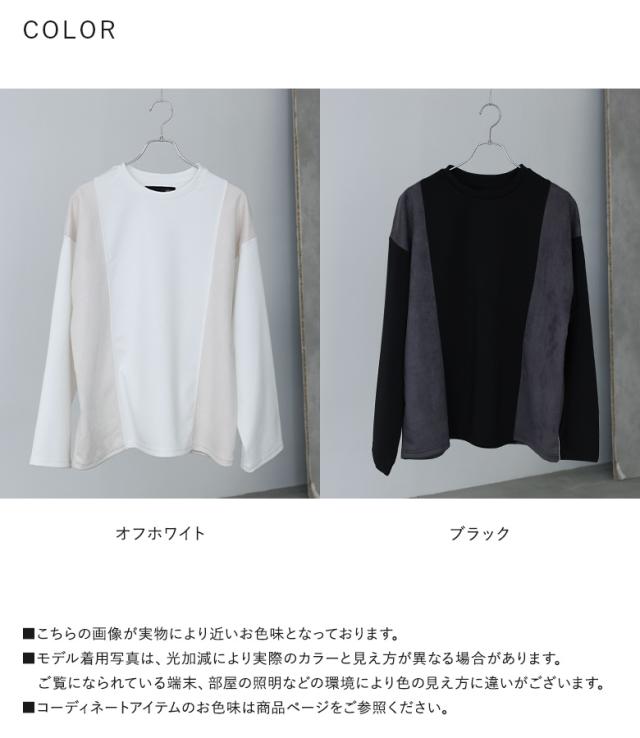 ■デザイン 生地の切り替えが印象的なデザインカットソー。ゆるっとしたシルエットで、ラフにご着用いただけます。 ■コーディネート 着回しやすいベーシックなデザインで、様々なアイテムに合わせることができます。 ■素材 滑らかで柔らかい肌触りのスウェードポンチ生地と、伸縮性があり楽に着られるカットソー生地を使用。程よい厚みで、季節の変わり目に最適な一着です。 |