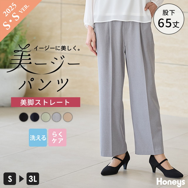ボトムス パンツ 大きいサイズ オフィス きれいめ ストレートパンツ 美ージーパンツ 美ージー レディース Honeys ハニーズ 美ージーストレート(股下65cm)