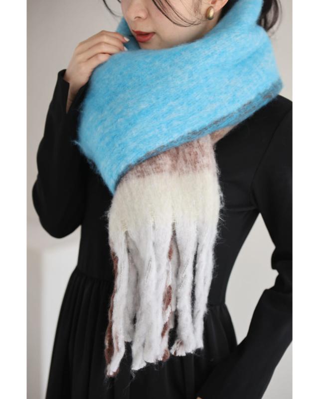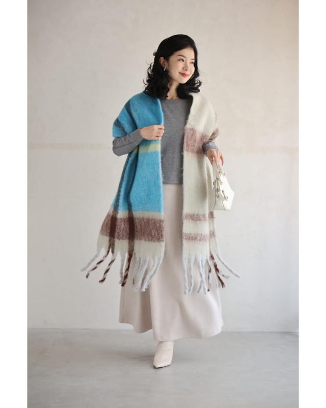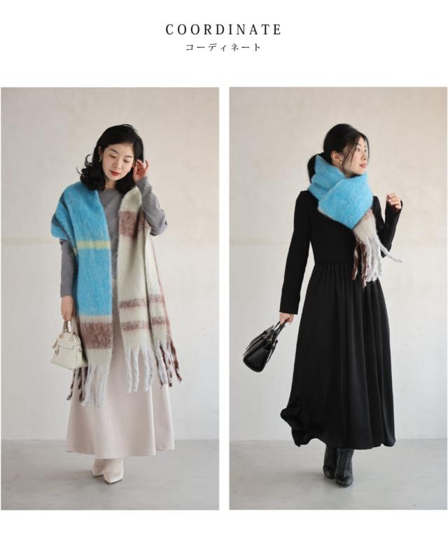 wkj00148 新作 新着 再入荷 CAWAII FRENCHPAVE フレンチパヴェ エレガント ベーシック カジュアル 可愛い かわいい カワイイ おしゃれ オシャレ お洒落 個性 個性的 定番 ベーシック 大人かわいい 大人可愛い 上品 女性らしい デザイン スタンダード ナチュラル きれいめ キレイめ シンプル フェミニン レディース レディースファッション 大人 ママ ミセス 30代 40代 50代 60代 ふんわり包まれる チェック もふもふ マフラー ロングマフラー 厚手 あったかい あたたかい 暖かい 巻き方 アレンジ アクセント ブルー 青 ミックスカラー 防寒対策 ふわっ 春 秋 冬 秋服 秋物 冬服 冬物 日常使い ヘビロテ おでかけ 通勤 旅行 ボリューム 差し色 大判