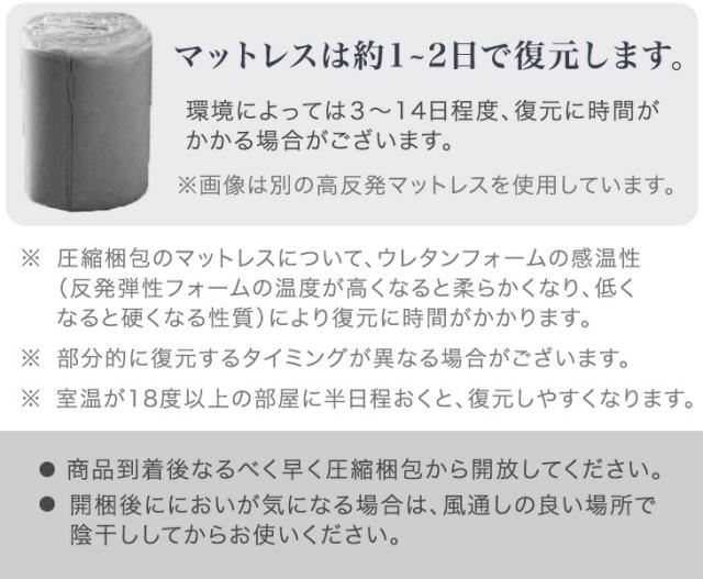 ※マットレスは約1~2日で復元します。気温や温度により3~14日かかる場合もあります。
