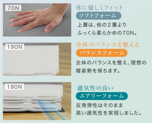 【下層】高反発再生多層ウレタン(25D、190N、反発弾性40%±3%)4cm