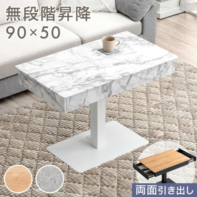【10時〜P5%還元】 引き出し付き 無段階 昇降テーブル コンパクト 幅90cm リフティング リフティングテーブル ソファテーブル 高め センターテーブル テーブル 引き出し 収納 高さ調節 昇降式 昇降式テーブル ガス圧 長方形 おしゃれ