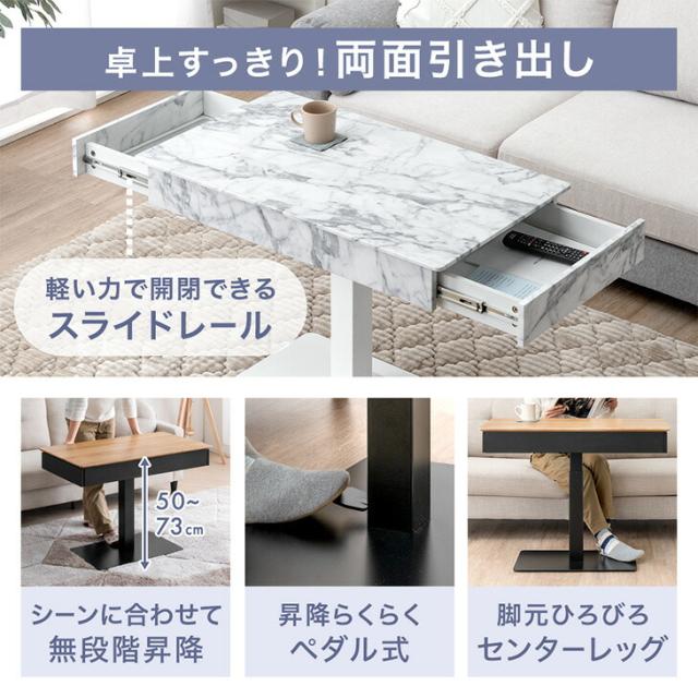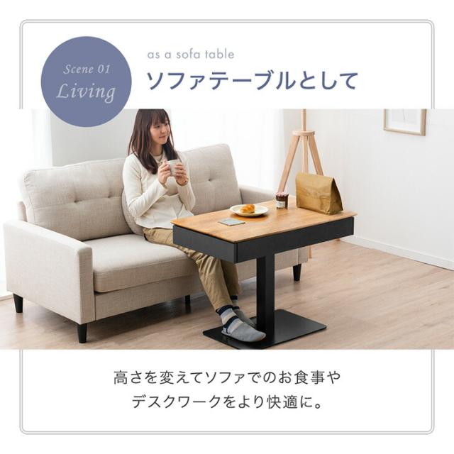 引き出し付き ガス圧式 無段階 昇降 テーブル 小さめ 机 リフトテーブル ガス圧昇降 リビングテーブル ソファーテーブル 在宅ワーク 在宅勤務 テレワーク