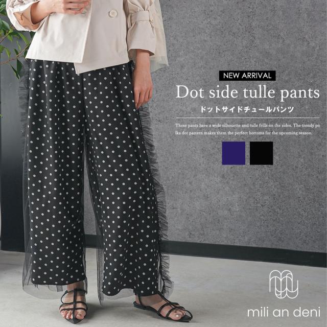 春新作 ドットサイドチュールパンツ ストレッチ イージー ボトム M レディース 卒業式 入学式 パンツ 春夏 ミリアンデニ メール便(郵2) p193386