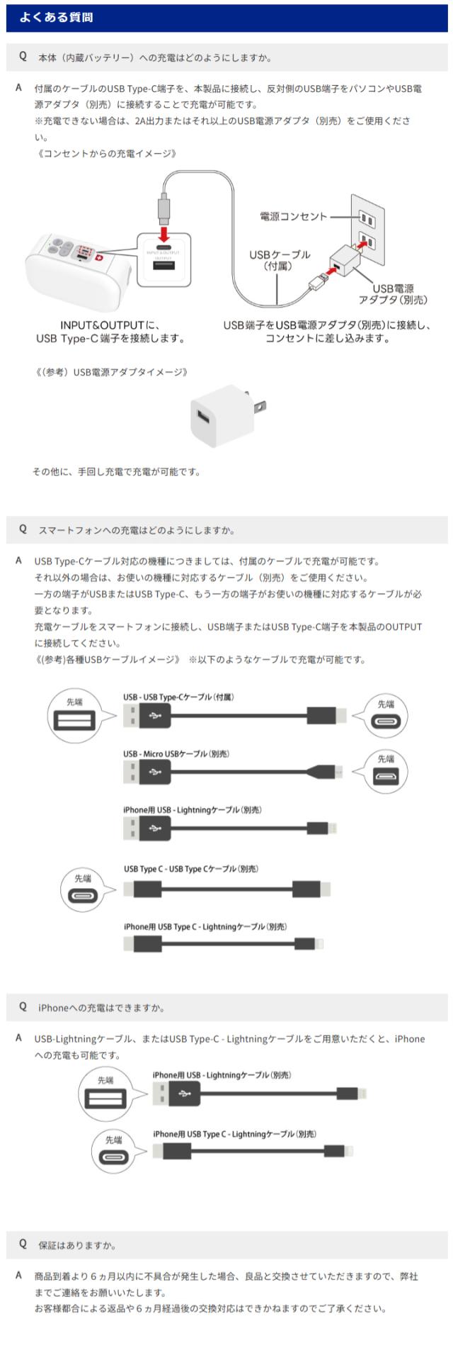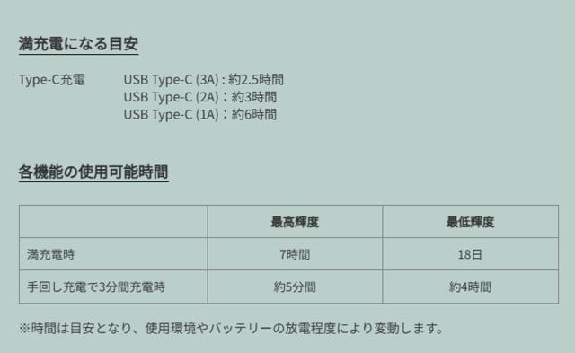 | Type-C 入力/出力 | DC5V/3A(最大) |