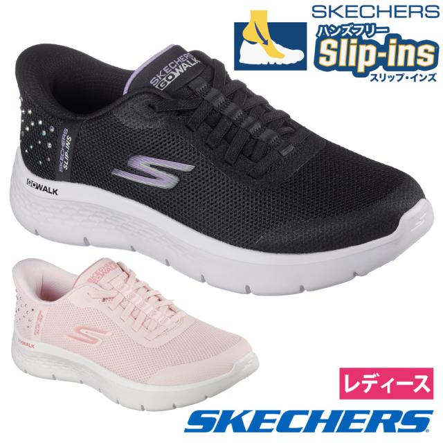 スケッチャーズ スリップインズ レディース スニーカー ハンズフリー スリッポン ウォーキングシューズ SKECHERS Slip-ins ゴー ウォーク フレックス クリスタ 125502 ブラック ピンク 靴 履きやすい ゴム紐 ノーマル幅 黒