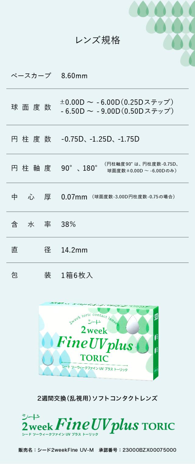 【シード】2weekFine UV plus TORIC (1箱6枚入)【1箱】【送料無料】【2週間使い捨てコンタクトレンズ】【高度管理医療機器】
