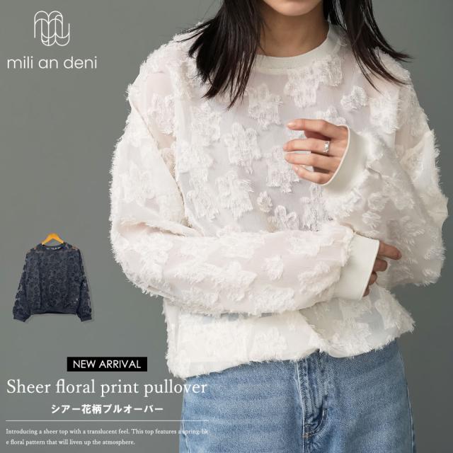 春新作 シアー花柄プルオーバー 長袖 M 春夏 ミリアンデニ t193007 メール便(郵2)対応