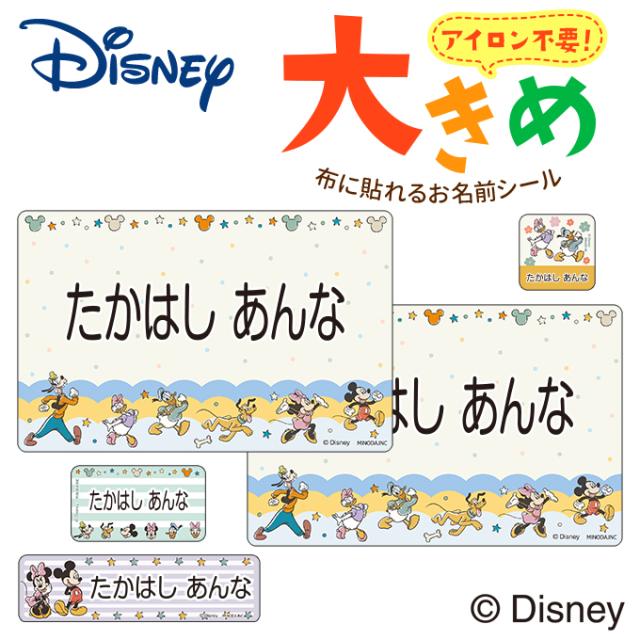 ミッキー&フレンズ 大きめお名前シール ディズニー ノンアイロン お昼寝布団 ゼッケン 体操服 布用 洗濯OK アイロン不要 PR 洋服 衣類 送料無料
