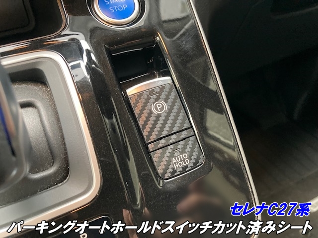 セレナ C27系 パーキングオートホールドスイッチ カット済みシート カーボン柄選択式 内装 電動パーキングスイッチ キズ防止 指紋低減 カスタムパーツ