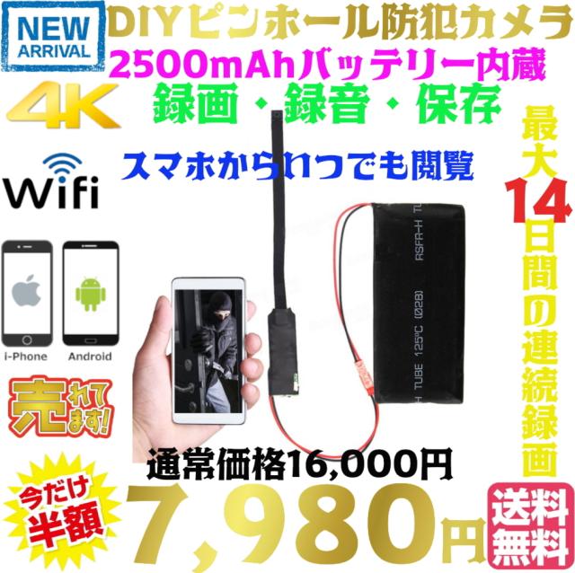 最新 正規品 4K DIY TB-DIY2500BC ピンホールカメラ アプリ内4K表示 2500mAh wi-fi wifi 自分で作ろう 記録 証拠 防犯 大型バッテリー 録画 録音 小型カメラ 防犯カメラ スパイ 隠しカメラ