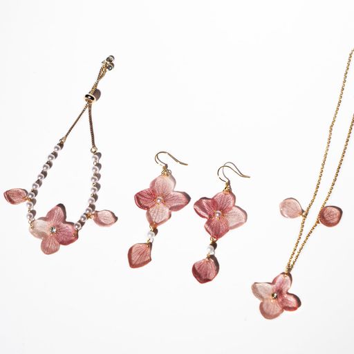 控えめな美しさ: このジュエリーセットのデザインの魅力は、自然で控えめな優雅さにあります。女の子の装いにさりげなく華を添える特別な彩りを加えつつ、決して主張しすぎないため、さまざまなコーディネートにマッチします。細部へのこだわりとして、形の美しい花びらを厳選し、色合いにも細心の注意を払いました。天然の花材を使用しているため、作品ごとに微妙な違いが生まれ、それがあなただけの唯一無二の存在感を引き立てます。