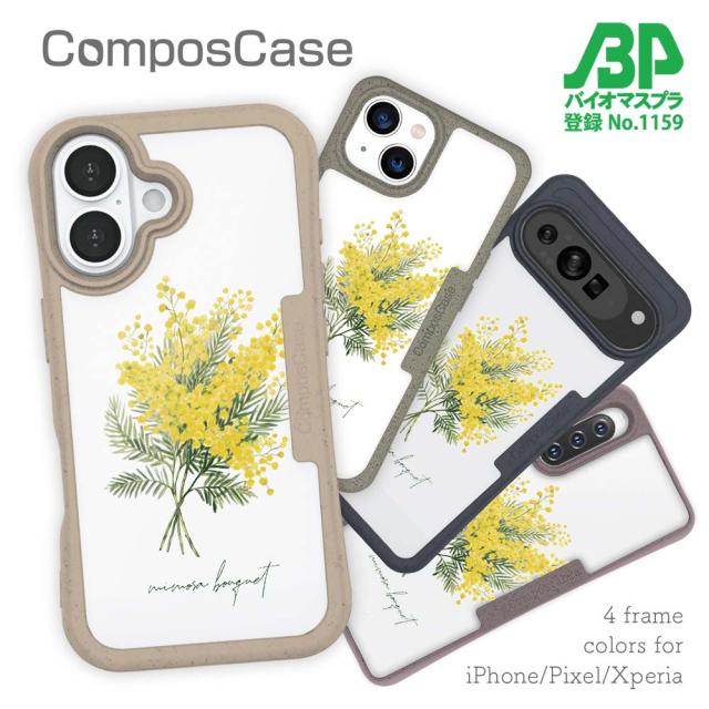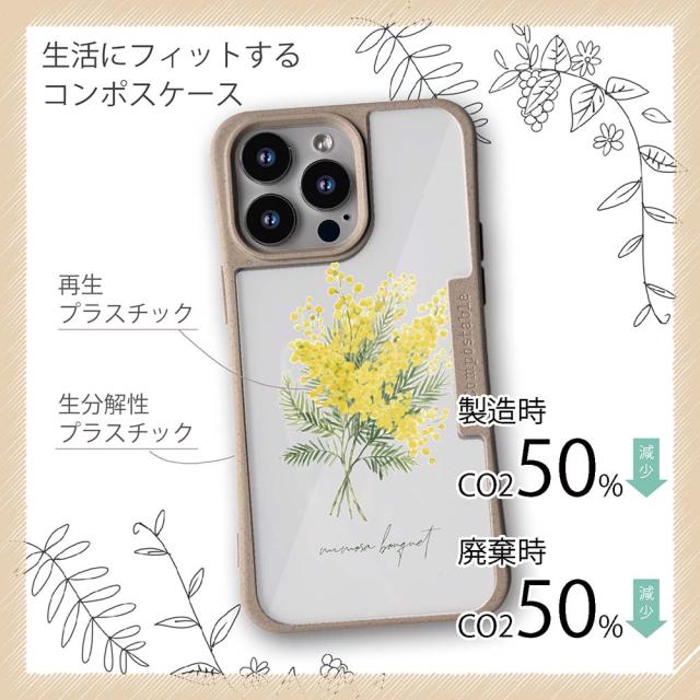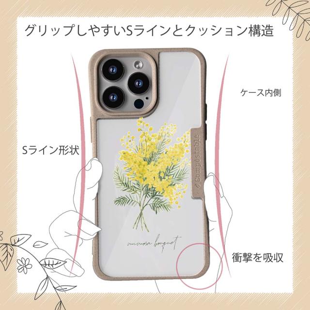 【楽天スーパーSALE 50%OFF】 コンポスケース & 着せ替え デザインシート セット iPhone16e ケース iPhone16 Pro iPhone16 iPhone15 Pro iPhone15 iPhone14 Pro iPhone14 iPhone13 花柄 プランツデザイン ミモザのブーケ