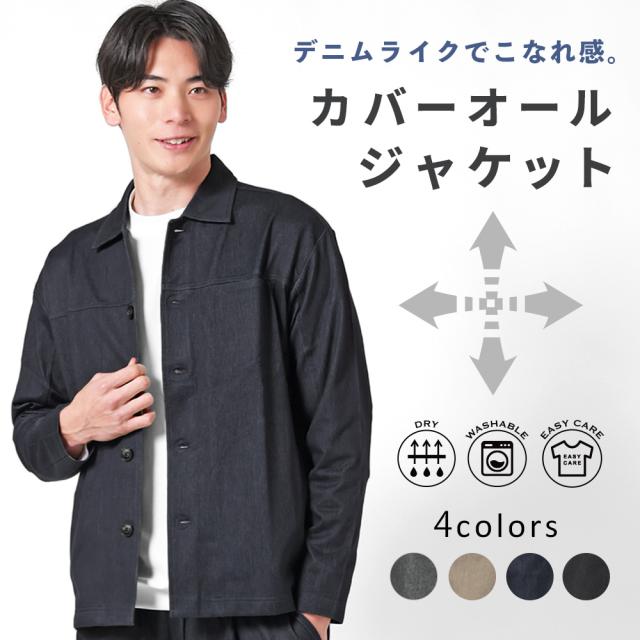 カバーオール メンズ ジャケット デニムライク ストレッチ 軽い おしゃれ らくちん 洗える 薄手 羽織 シンプル カジュアル 春 秋 きれいめ 男性 アーバンスクエア 35346