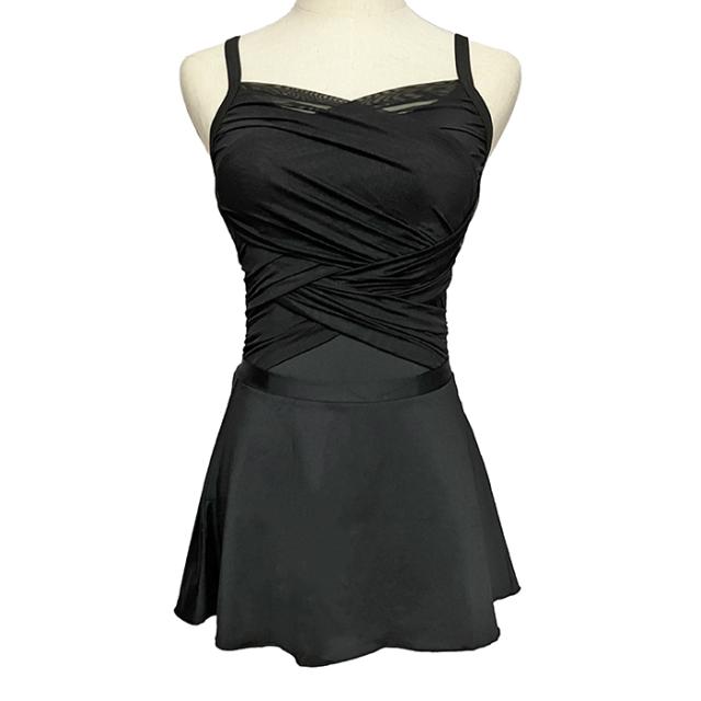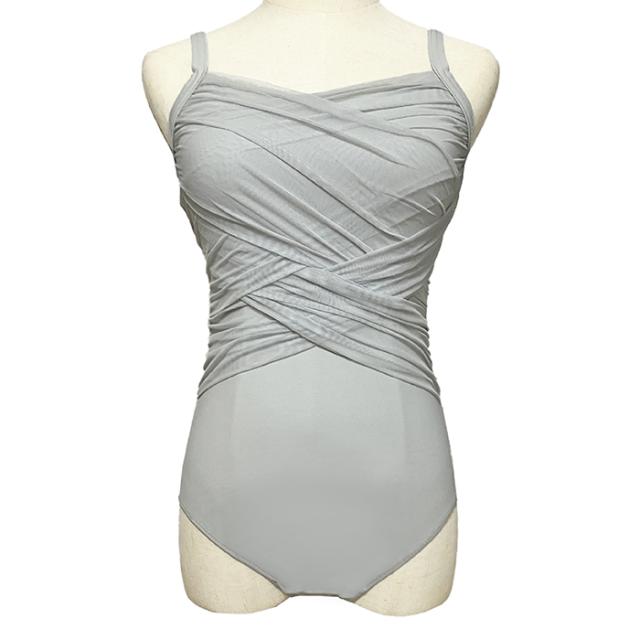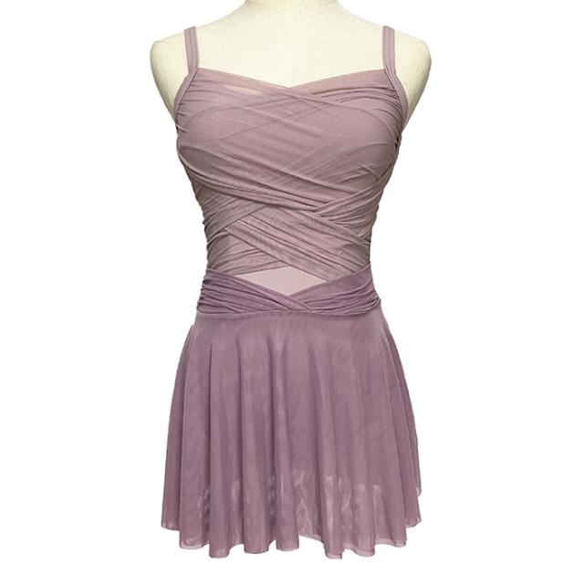 クロスメッシュが上品な、キャミソールタイプのレオタードです。