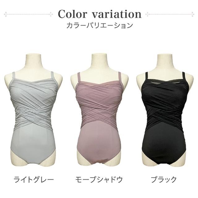 しっかりしたメッシュのクロスが美しいレオタード。くすみピンクのようなパープル・明るく肌馴染みのよいライトグレー・定番ブラック、大人可愛くて使いやすい3色!