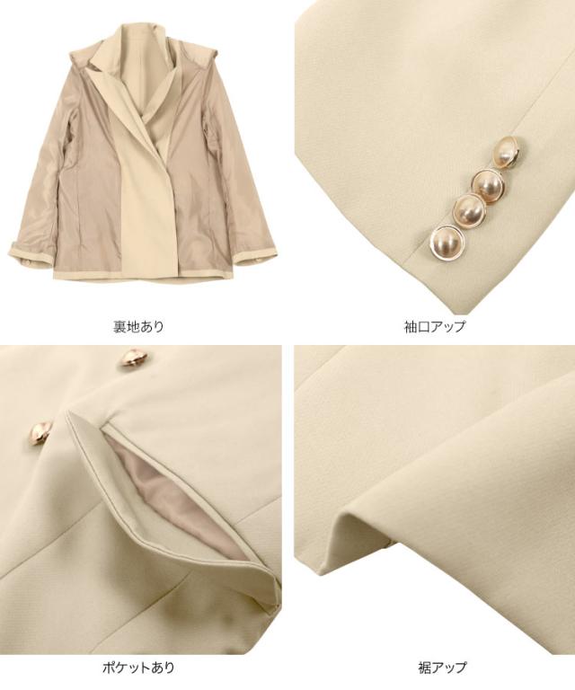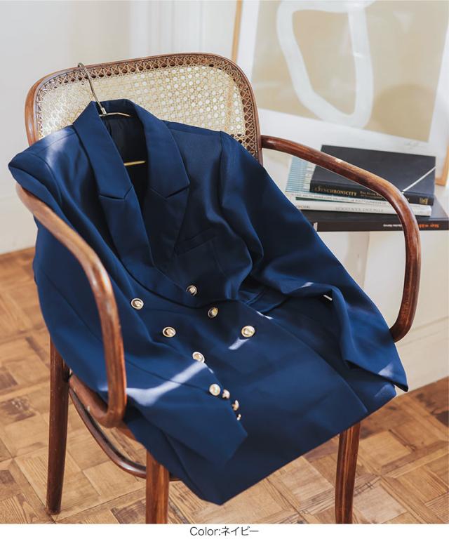 トラッドな金ボタンとフラップ付きのポケットがアクセントのオーバーシルエットのダブルジャケット。クラシックで洗練された雰囲気を演出します。肩パットは取り外し可能なので、シルエットをお好みで調整できます。ウエストはシェイプし過ぎず、切替えのパターンで綺麗なラインを保ちながらも、リラックス感のあるオーバーシルエットに仕上げています。【素材・サイズ感】ブラウスと合わせればオフィスカジュアルにも、ロンTを合わせれば普段使いにも対応できる万能アイテム。総裏仕立てで、程よい厚みの生地感はロングシーズンにわたって着用可能です。スタイリッシュでありながらもリラックスした着心地を提供する一着です。※キャンセル/変更不可※※お届けまでの日程について