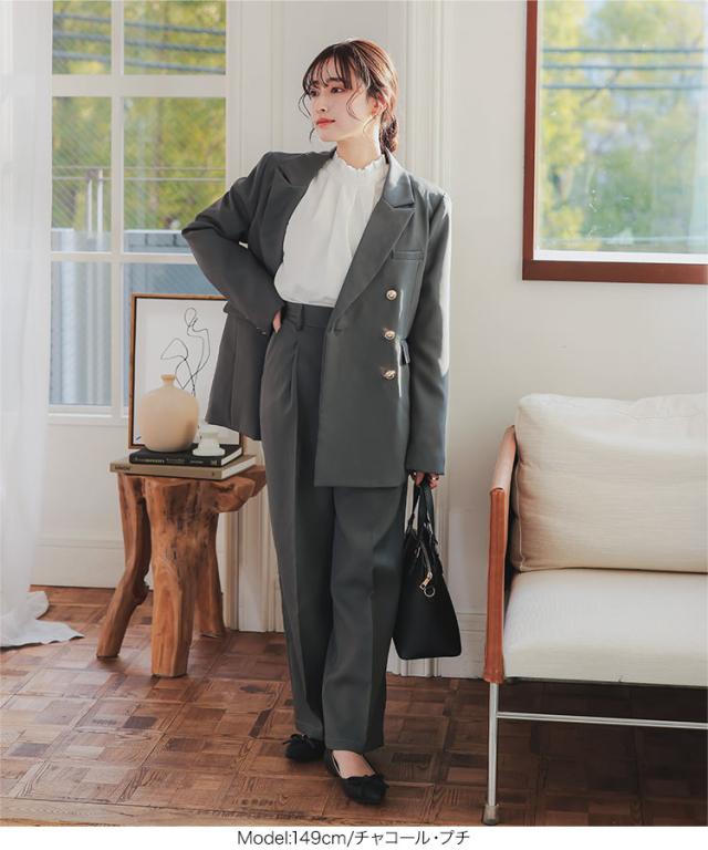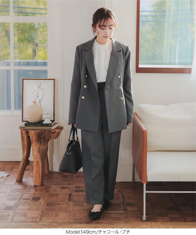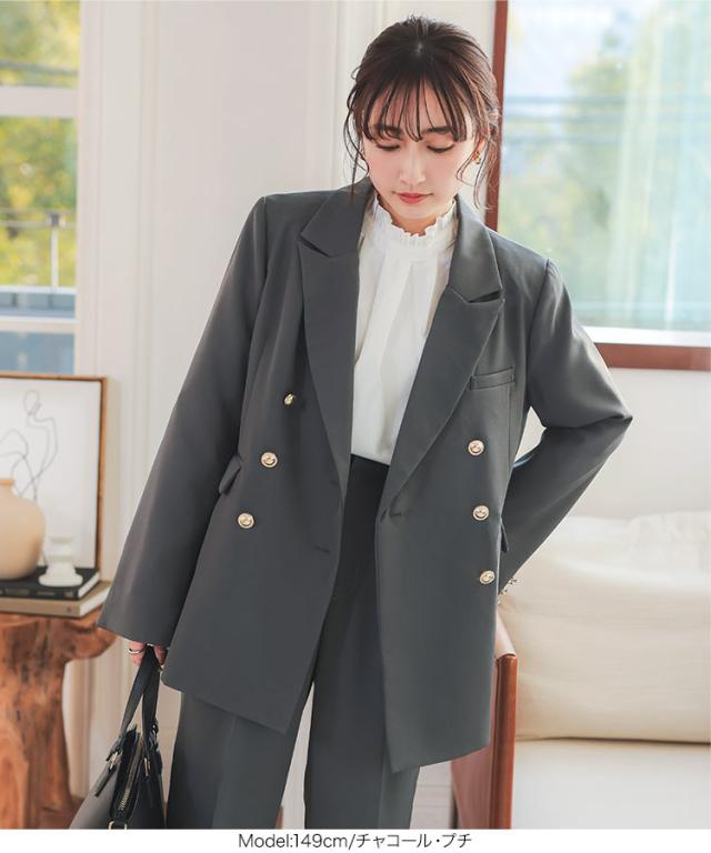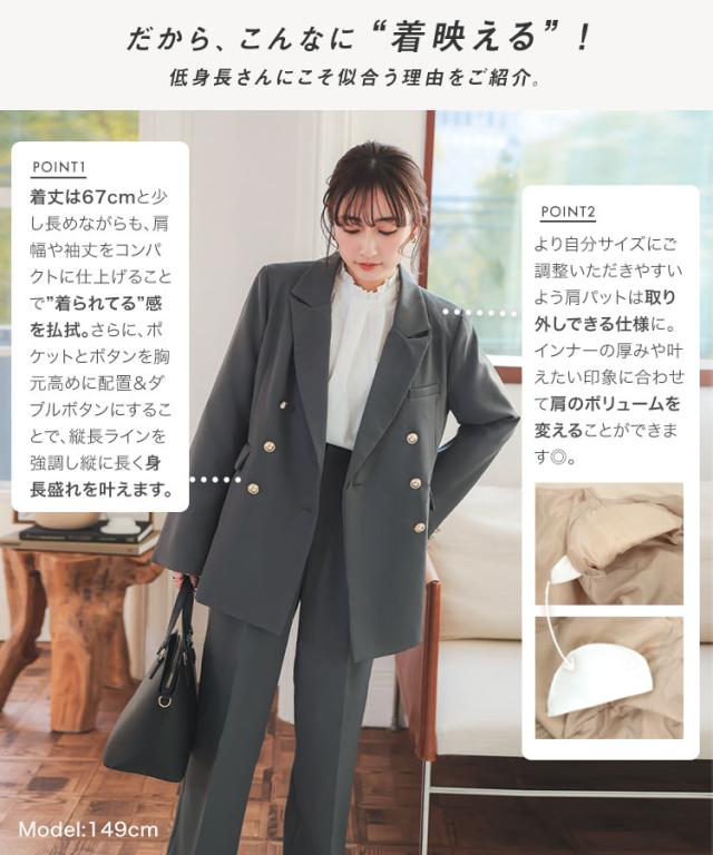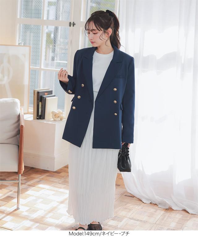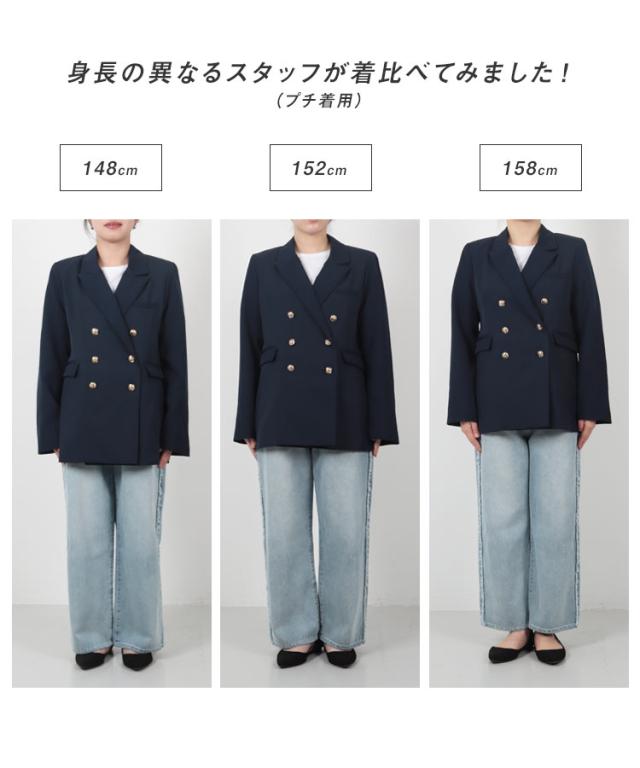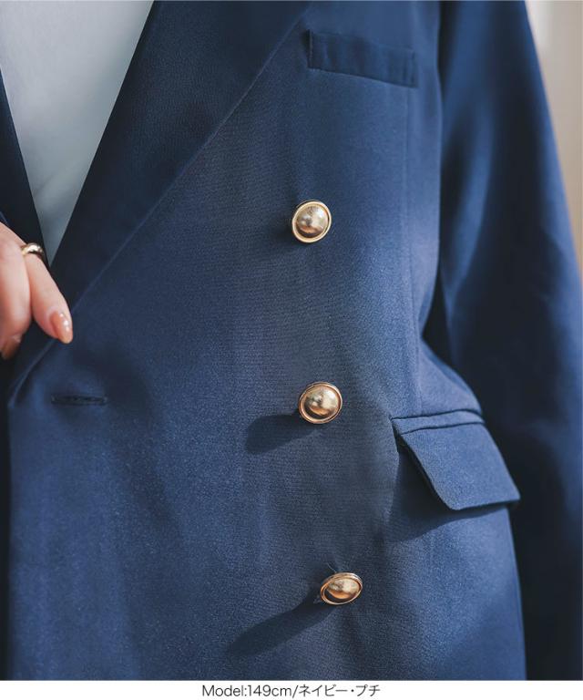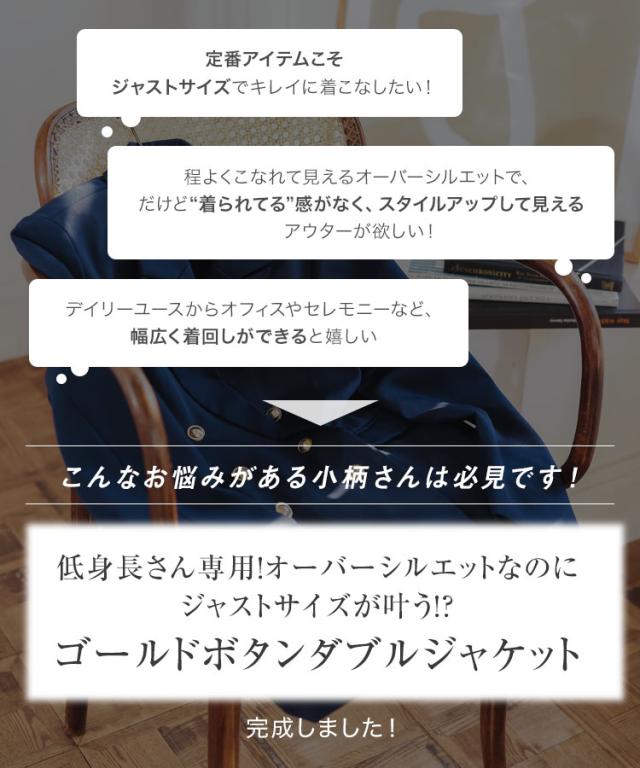 [ Petitle プチレ ] ゴールドボタンダブルジャケット K1356 入荷済 低身長 低身長サイズ 低身長さん向け 低身長さんサイズ 低身長さん向けサイズ 小柄 低身長コーデ サイズ プチサイズ チャコール グレー ネイビー 紺 紺ブレ