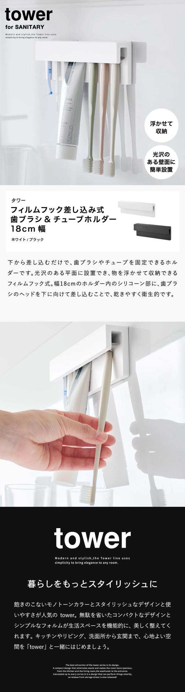 山崎実業 tower フィルムフック差し込み式歯ブラシ&チューブホルダー タワー W18 公式 1497 1498 ホワイト ブラック 歯ブラシホルダー 歯磨き粉 洗面所 収納 洗面台 お風呂 浮かせる収納 yamazaki タワーシリーズ JGS