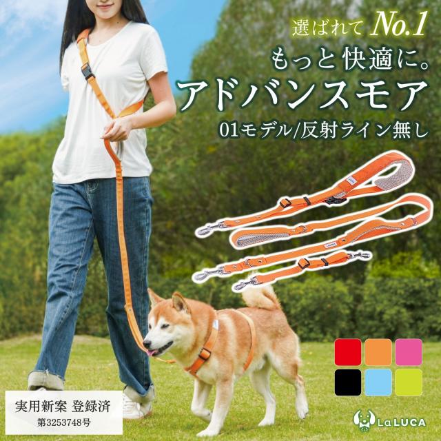 犬 ショルダーリード リード 小型犬 中型犬 大型犬 アドバンスモア 01モデル ハンズフリー 肩掛けリード 迷子防止 脱走防止 多頭引き ダブルリード 散歩 持ちやすい トレーニング 丈夫 頑丈 負担少ない 両手が使える おしゃれ 手離し 手ぶら ショートリード LaLUCA