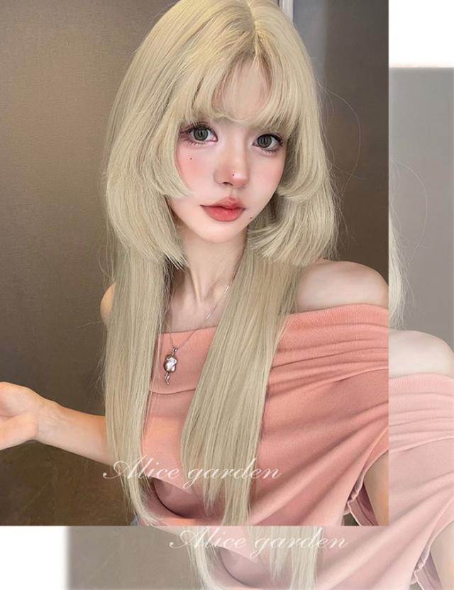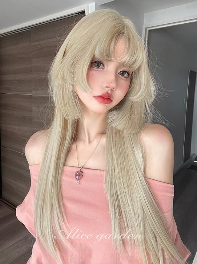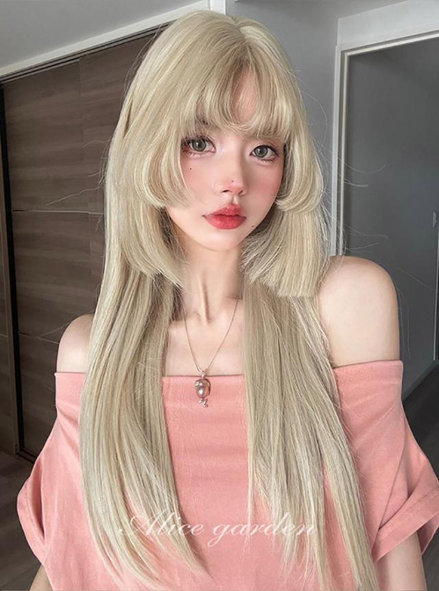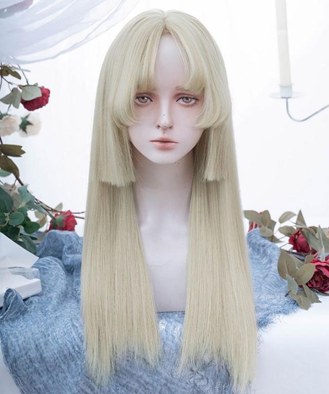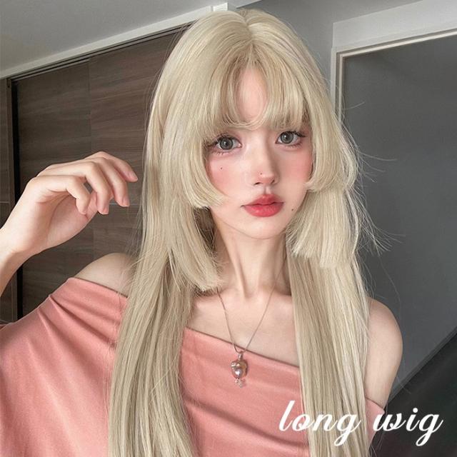 ウィッグ 姫カット レディース フルウィッグ ロング 長髪 ストレート 金髪 ゴールド 前髪あり 可愛い かわいい 大人用 コスプレ ロリータ ゴスロリ コスチューム 仮装 かつら 自然 小顔 変装 イベント ハロウィン