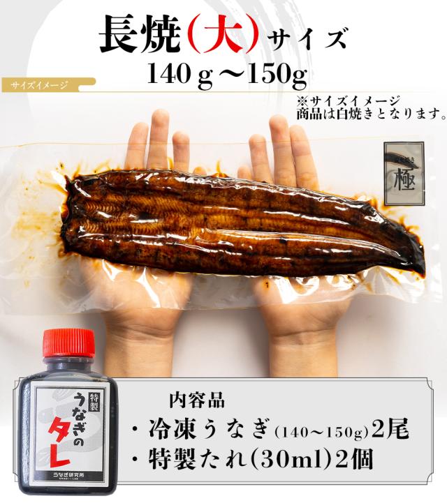うなぎ 白焼き 大(140〜150g) 2尾 国産 三河一色産 炭火手焼き 白焼 タレ付 お取り寄せ 土用の丑 お中元 お歳暮 母の日 父の日 お祝い プレゼント 個包装 真空パック