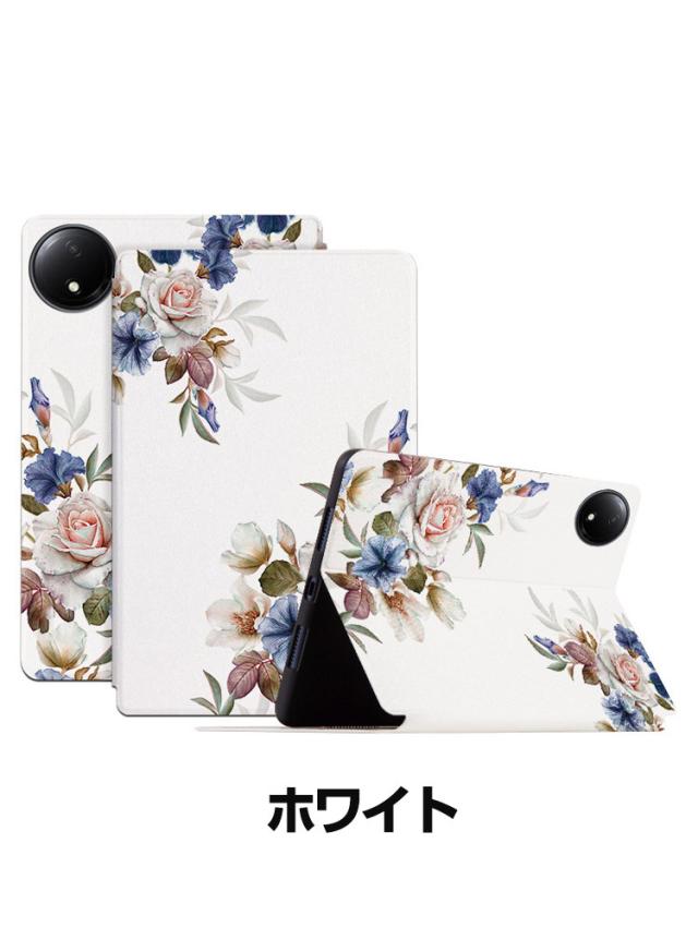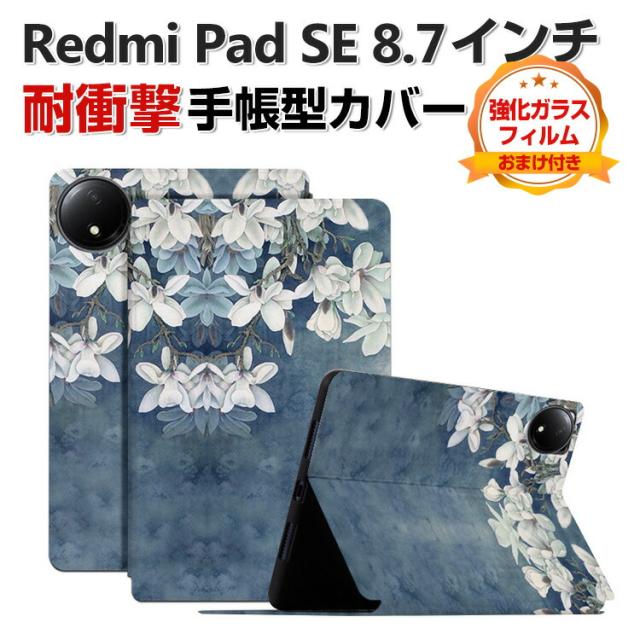 Xiaomi Redmi Pad SE 8.7インチ ケース 手帳型 カバー リドミ パッド SE 2024モデル TPU&PUレザー製 便利 人気 おすすめ おしゃれ 花柄 持ちやすい 汚れ防止 スタンド機能 カッコいい 耐衝撃 カバー お洒落な タブレットケース 強化ガラスフィルム おまけ付き