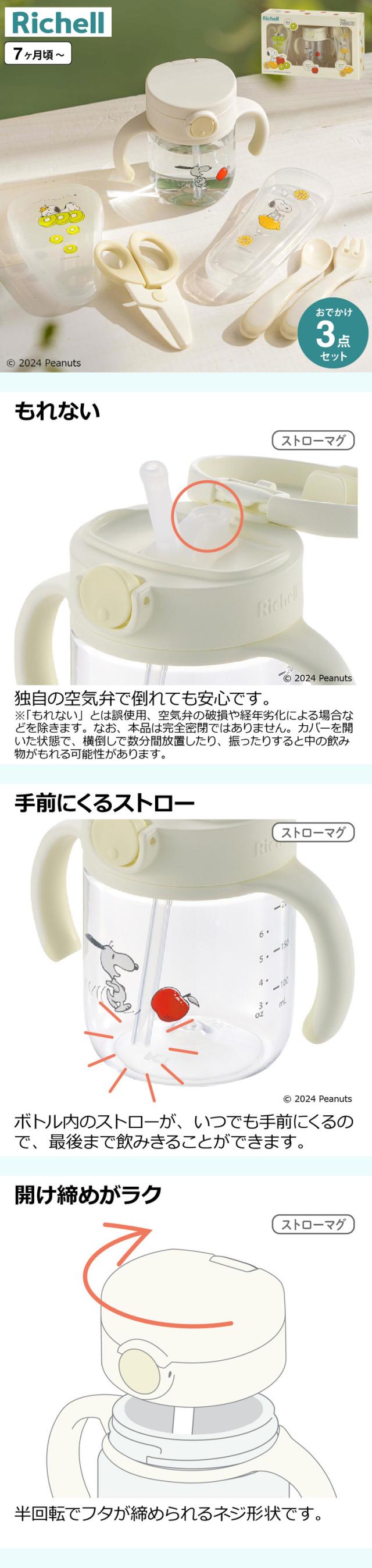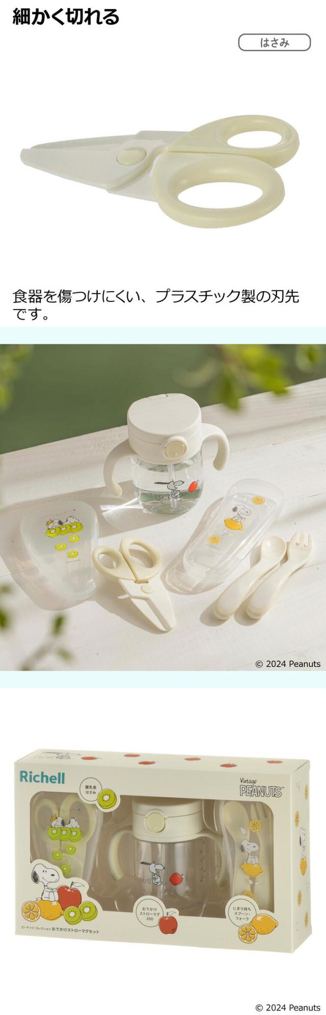 リッチェル Richell ピーナッツ コレクション おでかけストローマグセットFS 送料無料 スヌーピー ストローマグ にぎり持ちスプーン フォーク 離乳食はさみ 赤ちゃん 食器 ベビー食器 ベビー用品