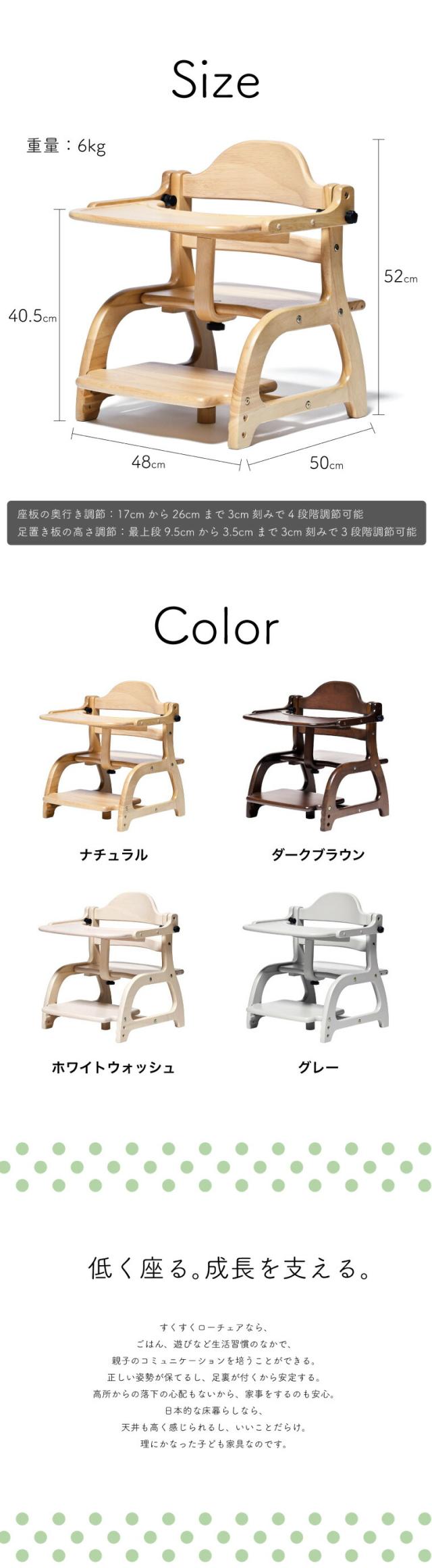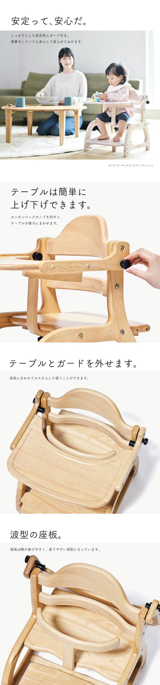 大和屋 テーブル付き ローチェア 足置き付き 高さ調節可 赤ちゃん用 椅子 木製 ベビーチェア ロー すくすくチェア