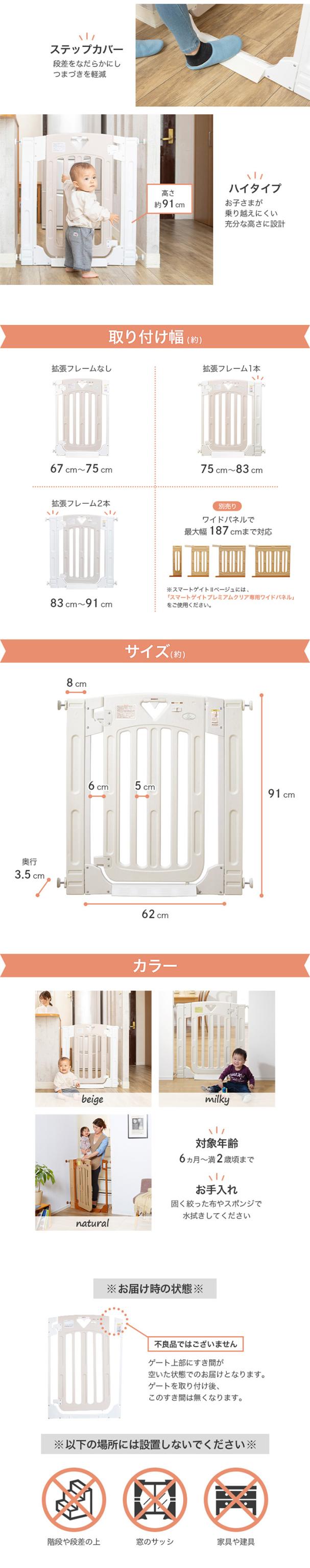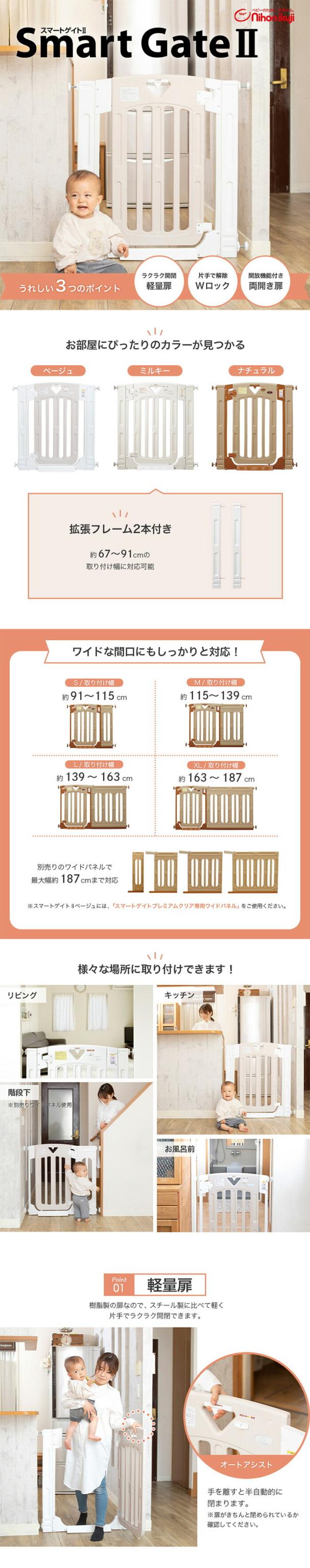 日本育児 スマートゲイト Smart Gate II ベビーゲート ベビーフェンス ベビーガード 幅約67〜91cm 高さ91cm 送料無料 正規品 階段下 両開きドアストッパー ハイタイプ 拡張フレーム2枚付 幅調整可 ロック付 つっぱり式 スマートゲート ベビー用品
